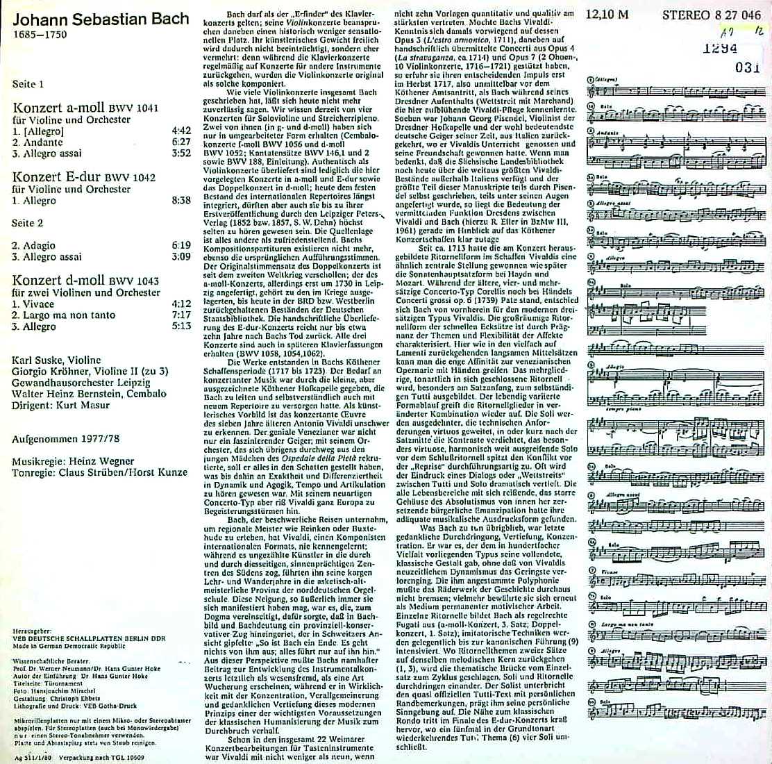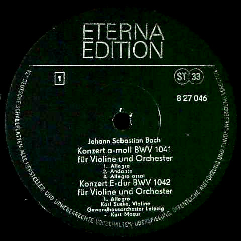 商品コード:1294-031n[ETERNA] K.ズスケ, G.クレーナー(vn) K.マズア指揮ゲヴァントハウスo. W.ハインツ・ベルンシュタイン(cemb) / バッハ:Vn協奏曲1番B.1041, Vn協奏曲2番B.1042, 2Vn協奏曲B.1043