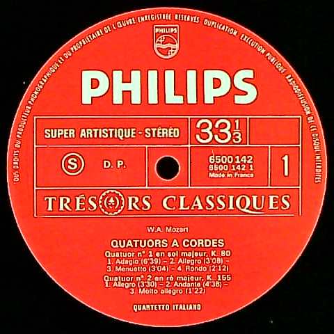 商品コード:1294-016[PHILIPS] イタリアQt. / モーツァルト:弦楽四重奏曲1~4番K.80, K.155, K.156, K.156のアダージョ(別版), K.157
