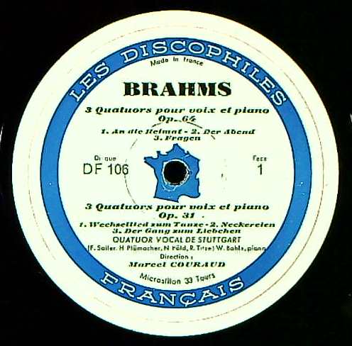 商品コード:REG-2661[仏Les Discophiles Français] M.クーロー指揮シュトゥットガルト四重唱団 / ブラームス:声楽とPfのための四重唱曲集Op.31, Op.64, Op.92, Op.112