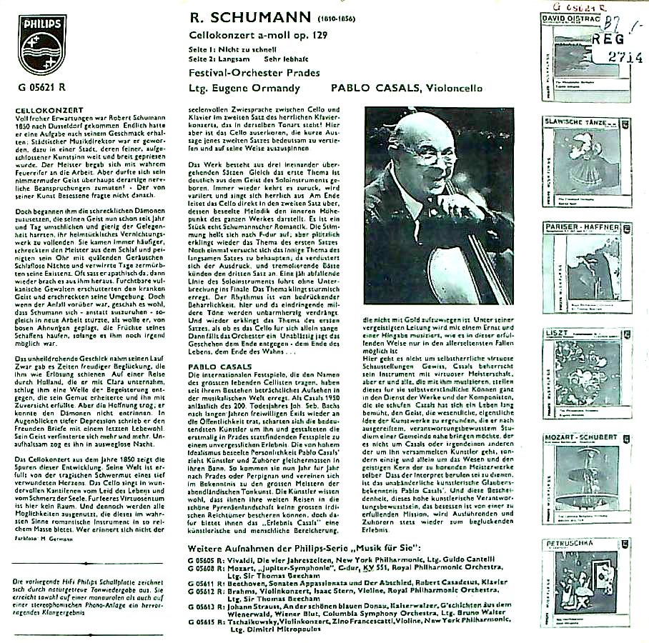 商品コード:REG-2714[欧PHILIPS] P.カザルス(vc) E.オーマンディ指揮プラド祝祭o. / シューマン:Vc協奏曲Op.129