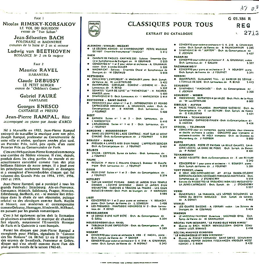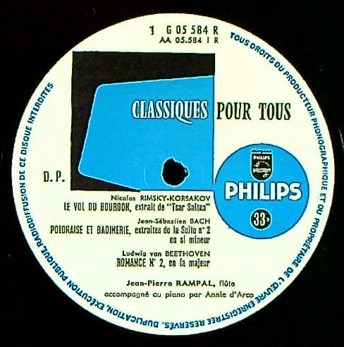 商品コード:REG-2713[欧PHILIPS] J.P.ランパル(fl) A.ダルコ(pf) / Fl小品集/リムスキー・コルサコフ, バッハ, ベートーヴェン, ラヴェル, ドビュッシー, フォーレ, エネスク