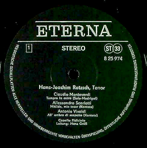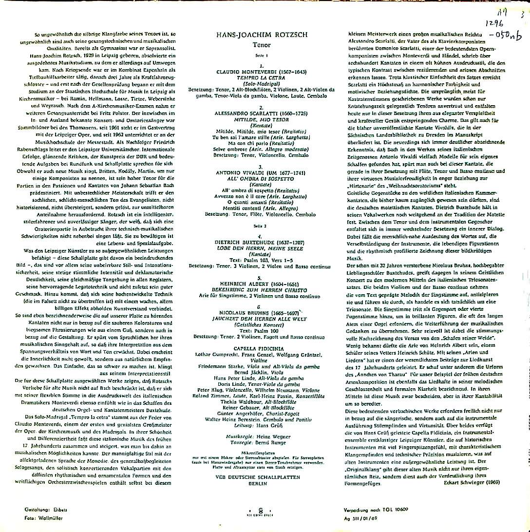 商品コード:1296-050nb[ETERNA] H.J.ロッチュ(t) H.グリュス指揮カペラ・フィディチニア / アリア集/モンテヴェルディ, スカルラッティ, ヴィヴァルディ, ブクステフーデ, アルベルト, ブルーンス