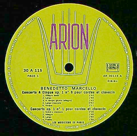 商品コード:1297-045[ARION] パリ・レ・ミュズィシャン・メンバー/ B.マルチェッロ:Cemb協奏曲Op.1-1, Op.1-4, Op.1-6, Ob協奏曲ハ短調「ヴェニスの愛」