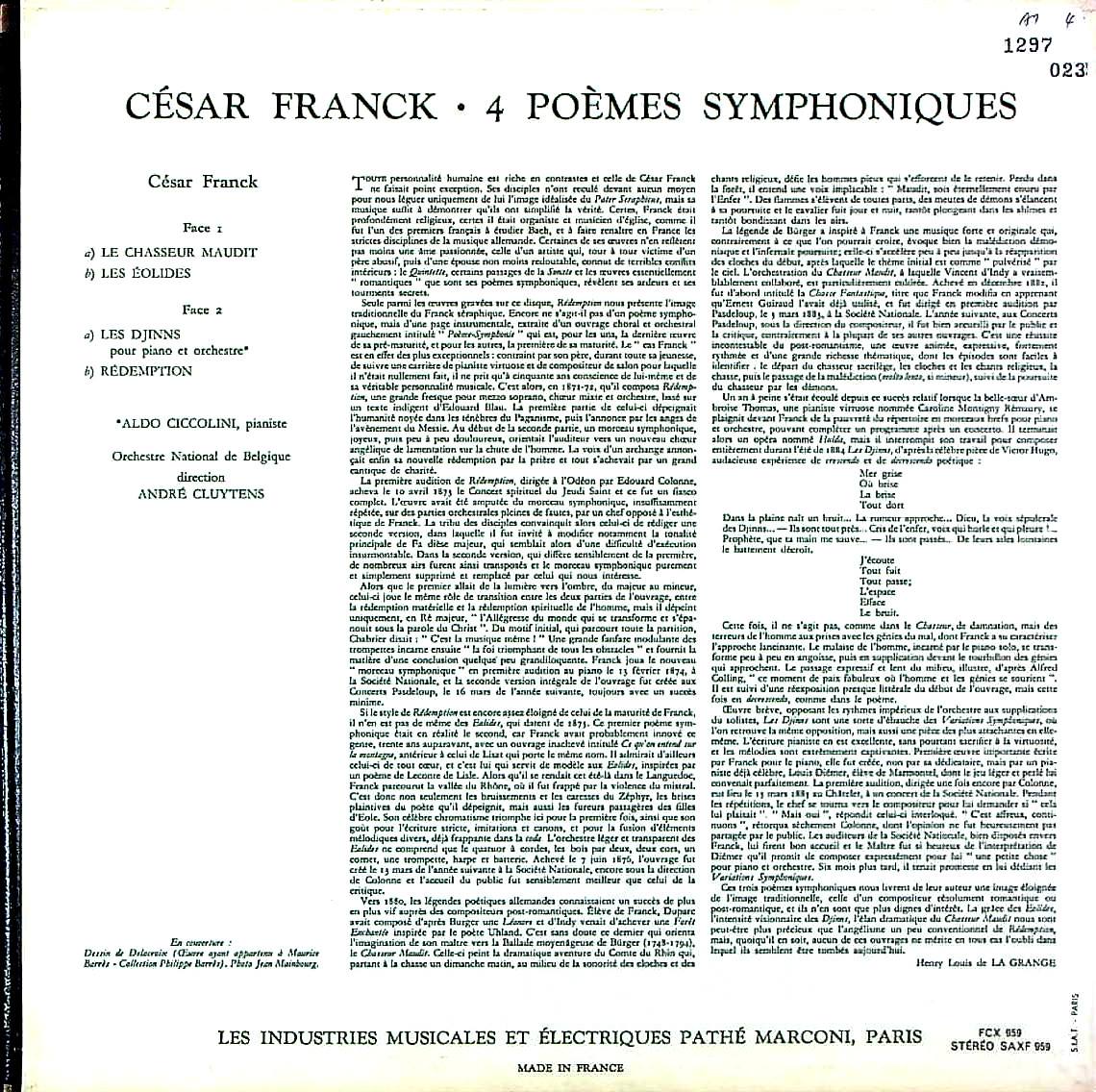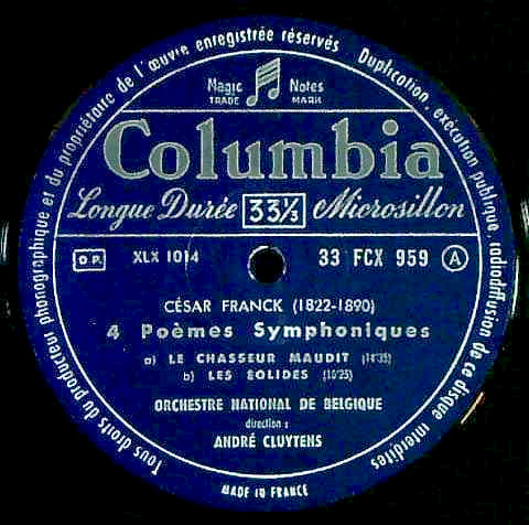 商品コード:1297-023[COLUMBIA] A.クリュイタンス指揮ベルギー国立o. A.チッコリーニ(pf)/ フランク:4つの交響詩/のろわれた狩人, アイオリスの人々, 魔神, 交響的間奏曲「贖罪」(オラトリオからの第5曲)