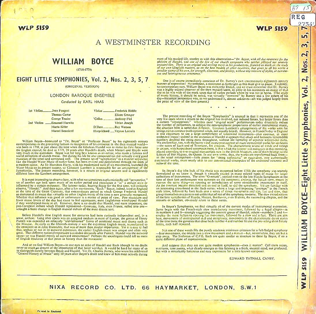 商品コード:REG-2754p[英NIXA] K.ハース指揮ロンドン・バロックEns. / 「ボイス:交響曲全集Vol.2」/2, 3, 5, 7番(原典版)