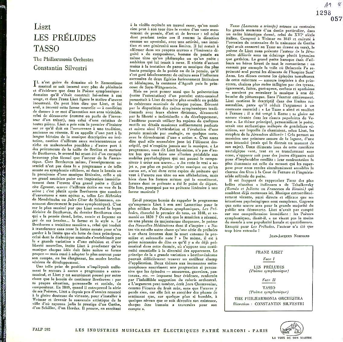 商品コード:1298-057[La Voix De Son Maître] C.シルヴェストリ指揮フィルハーモニアo. / リスト:交響詩「前奏曲」S.97, 交響詩「タッソー、悲劇と勝利」S.96