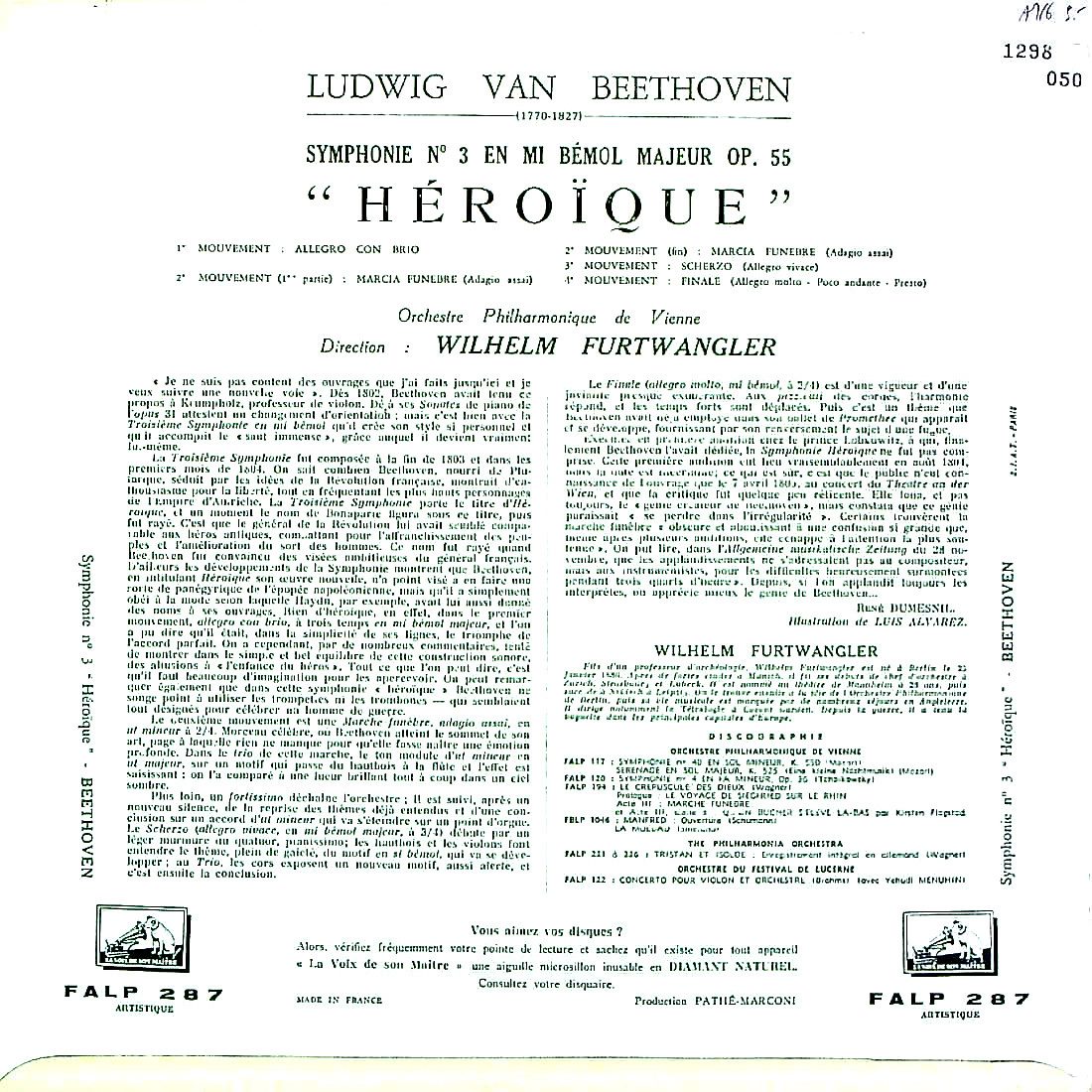 商品コード:1298-050[La Voix De Son Maître] W.フルトヴェングラー指揮ウィーンpo. / ベートーヴェン:交響曲3番Op.55「英雄」