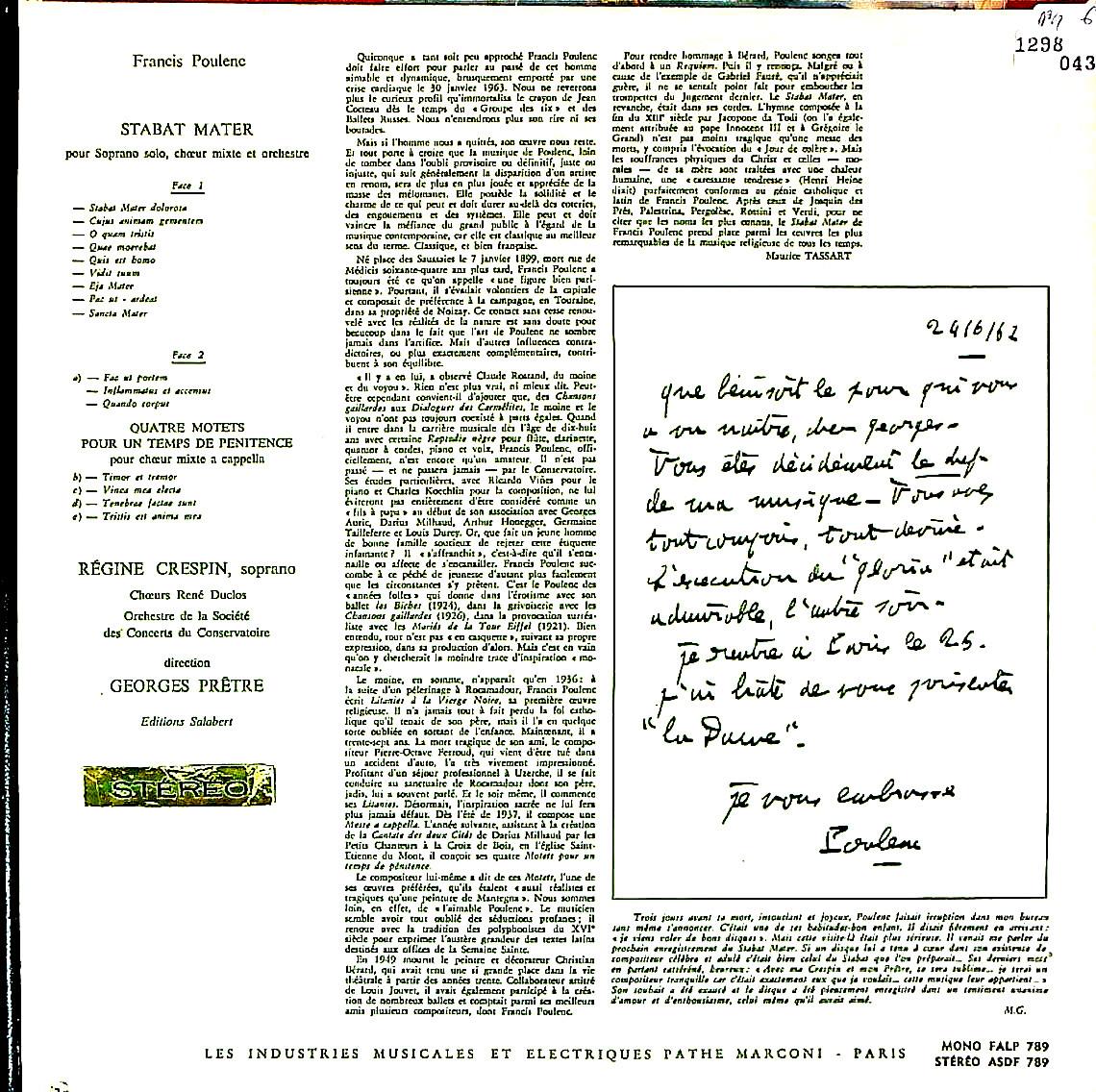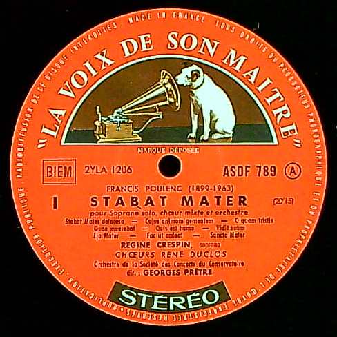 商品コード:1298-043[La Voix De Son Maître] G.プレートル指揮パリ音楽院o./ルネ・デュクロcho. R.クレスパン(s) / プーランク:スターバト・マーテル, 悔悛のための4つのモテット