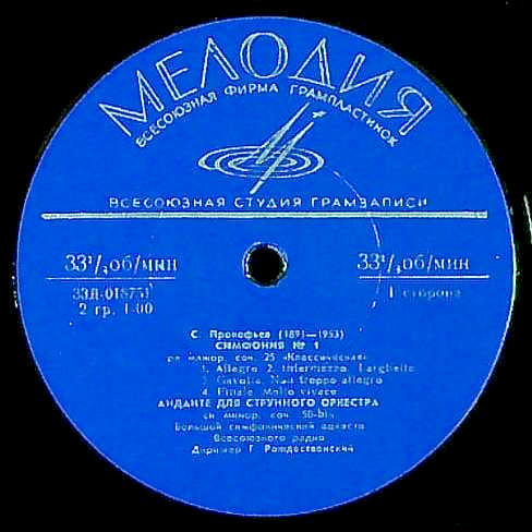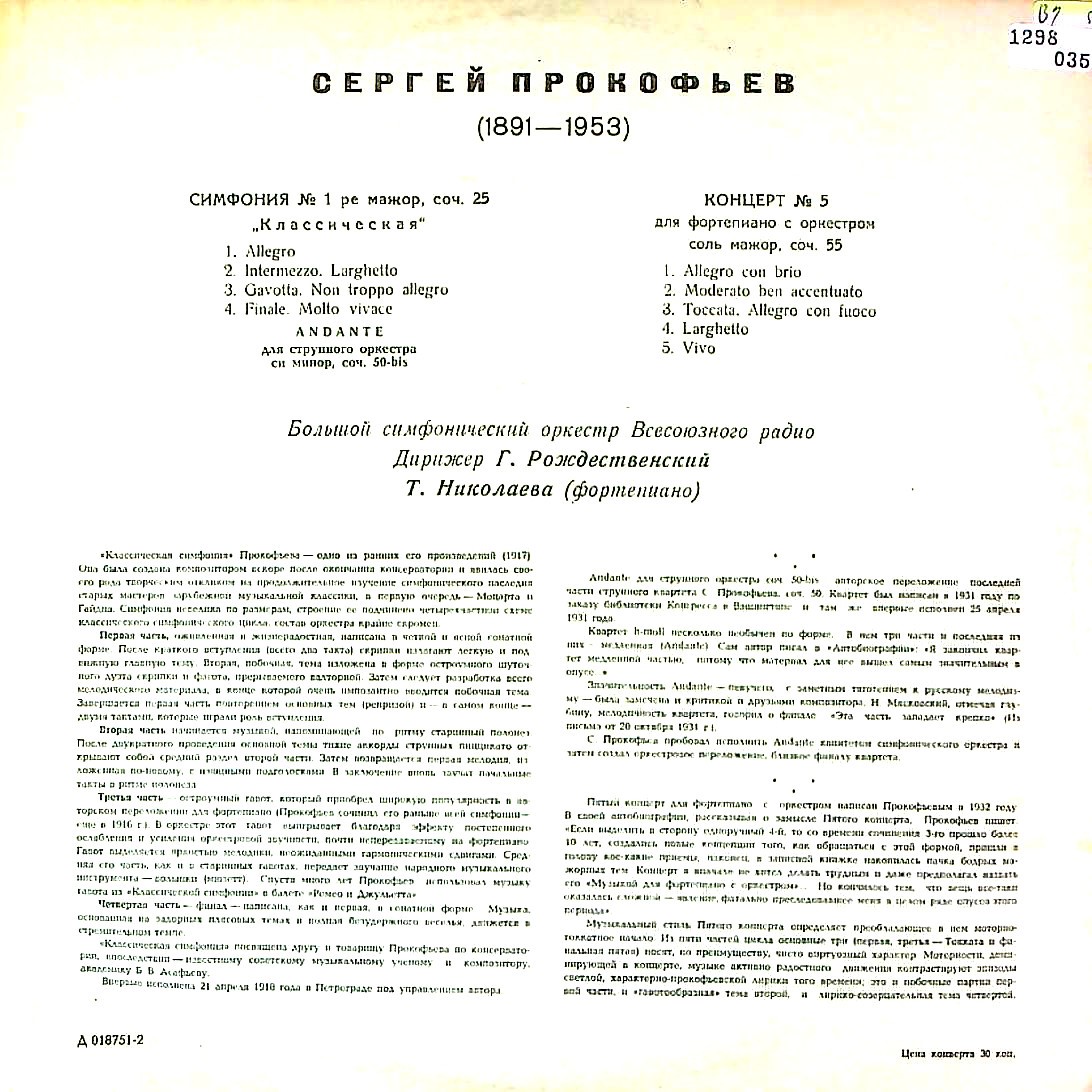 商品コード:1298-035n[MELODIYA] G.ロジェストヴェンスキー指揮ソビエト放送o./T.ニコラーエワ(pf) / プロコフィエフ:交響曲1番Op.25, 弦楽合奏のためのアンダンテOp.50bis, Pf協奏曲5番Op.55
