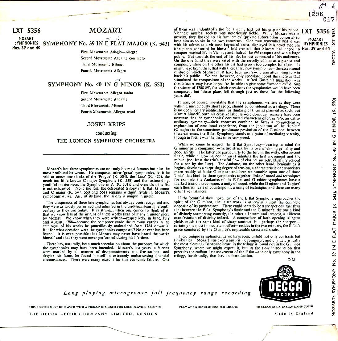 商品コード:1298-017[DECCA] J.クリップス指揮ロンドンso. / モーツァルト:交響曲39番K.543, 交響40番K.550