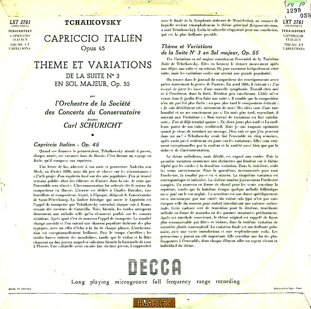 商品コード:1299-059p[DECCA] C.シューリヒト指揮パリ音楽院o. / チャイコフスキー:イタリア奇想曲Op.45, 組曲3番Op.55~主題と変奏