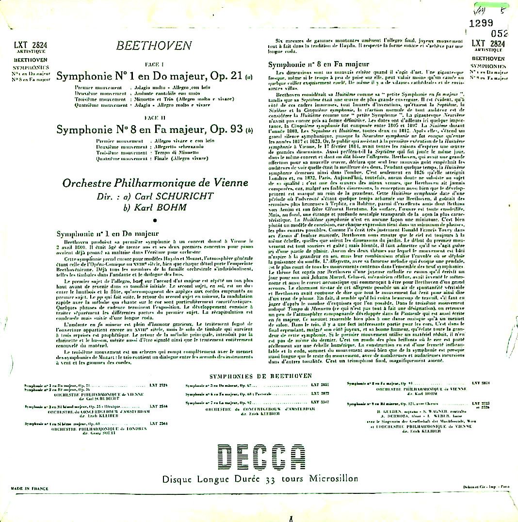 商品コード:1299-052p[DECCA] C.シューリヒト(1番), K.ベーム(8番)指揮ウィーンpo. / ベートーヴェン:交響曲1番Op.21, 交響曲8番Op.93