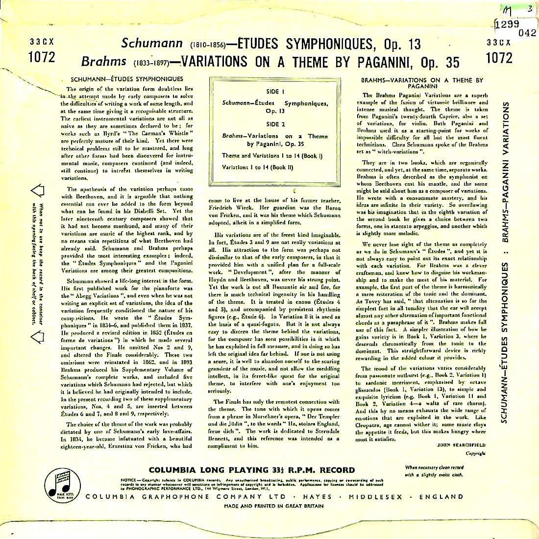商品コード:1299-042p[COLUMBIA] G.アンダ(pf) / シューマン:交響的練習曲Op.13, ブラームス:パガニーニ変奏曲Op.35