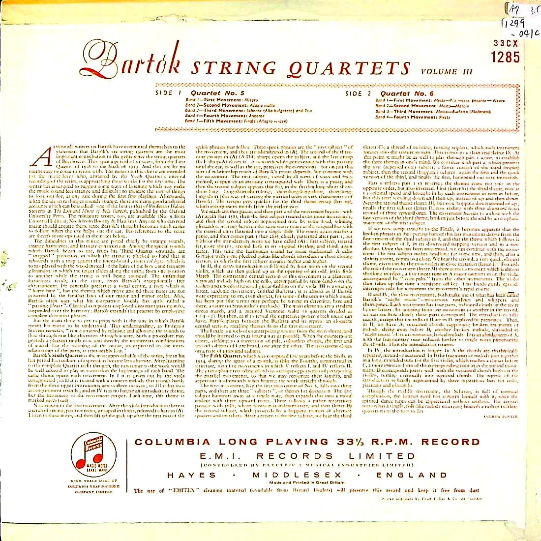 商品コード:1299-041c[COLUMBIA] ヴェーグQt. / バルトーク:弦楽四重奏曲全集-3