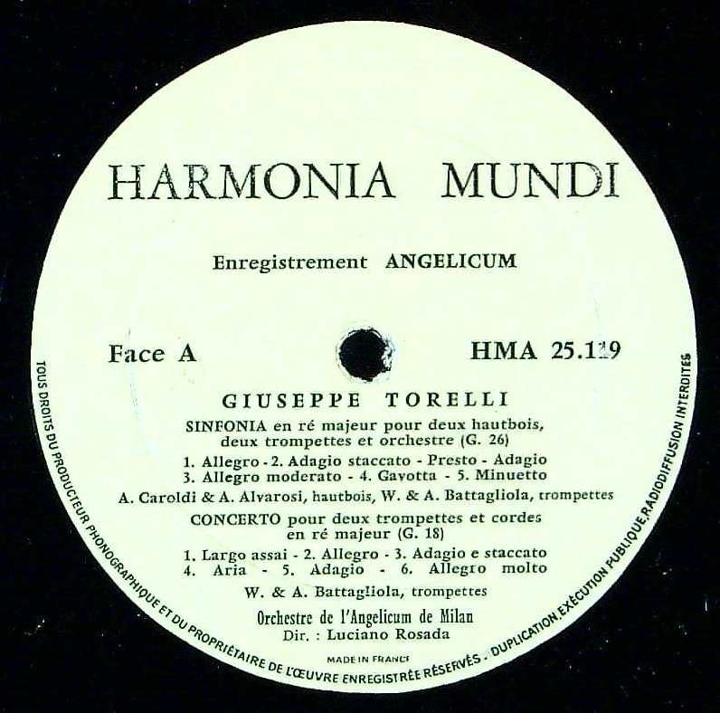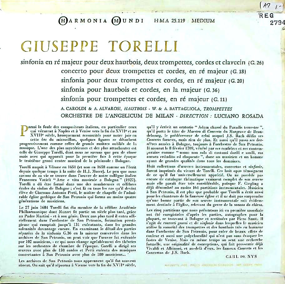商品コード:REG-2794[仏Harmonia Mundi] A.カロルディ, A.アルバロージ(ob) W&A.バタリオーラ(tr) L.ロサーダ指揮ミラノ・アンジェリクムo. / トレッリ:2Ob・2TpのためのシンフォニアG.26 他
