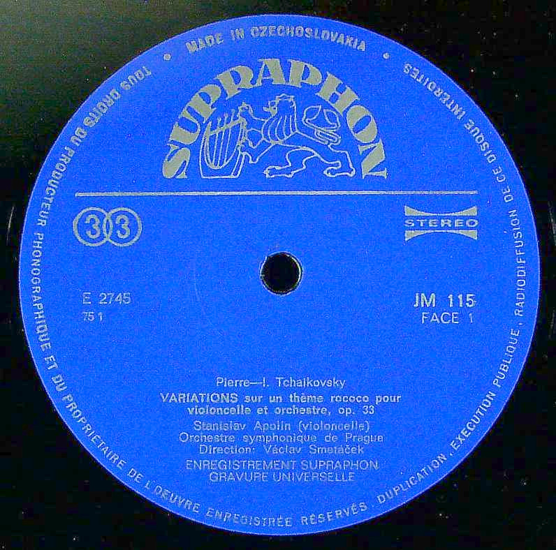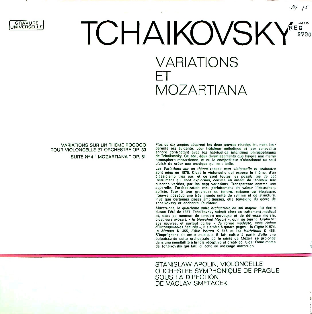 商品コード:REG-2790[旧チェコ・スロバキアSUPRAPHON] V.スメターチェク指揮プラハso., S.アポーリン(vc) / チャイコフスキー:ロココ風の主題による変奏曲Op.33, 組曲4番Op.61「モーツァルティアーナ」
