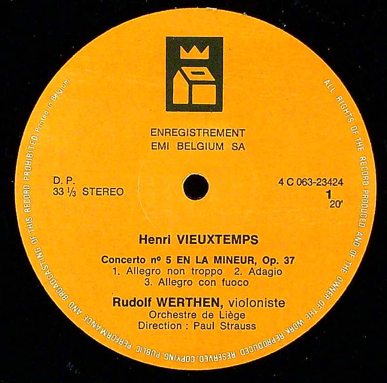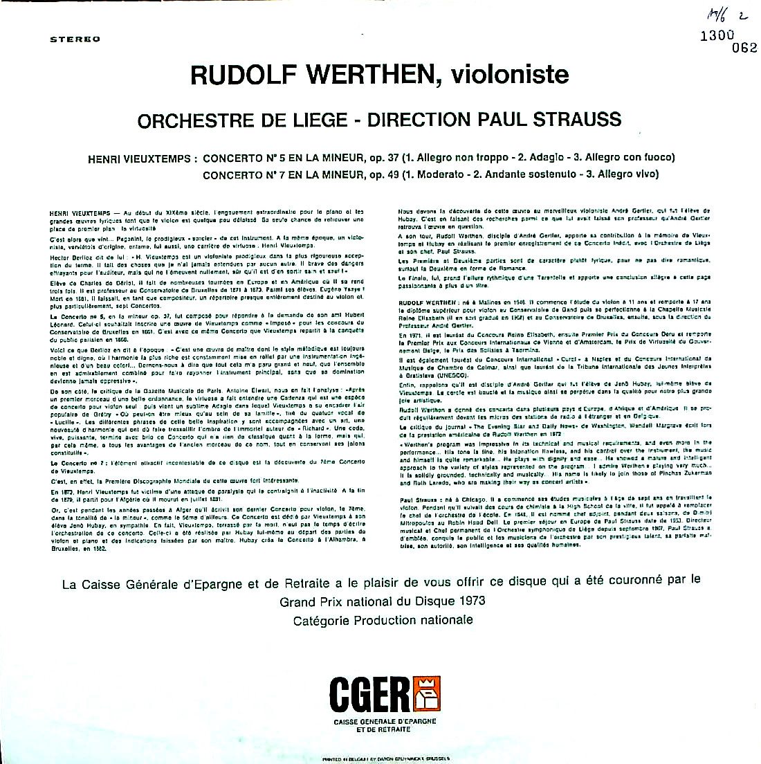 商品コード:1300-062[CGER(EMI Belgium SA)] R.ヴェルテン(vn) P.シュトラウス指揮リエージュo. / ヴュータン:Vn協奏曲5番Op.37, Vn協奏曲7番Op.49