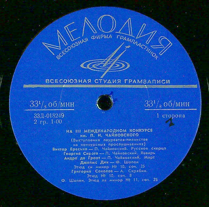 商品詳細:これは4年ごとに首都モスクワとサンクトペテルブルクで開催されるクラシック音楽のコンクール。エリザベート王妃国際音楽コンクール(ベルギー)、ショパン国際ピアノコンクール(ポーランド)とともに世界三大音楽コンクールの一つとされる。収録されたのは1966年第3回チャイコフスキー国際コンクールのピアノ部門における入賞者10人の録音である。1966年のピアノ部門はウィキペディアの掲載があり、以下となる--第1位 グリゴリー・ソコロフ(ソ連)--第2位 ミッシャ・ディヒター(アメリカ)--第3位 ヴィクトル・エレシコ(ソ連)--第4位 アレクサンドル・スロボジャニク(ソ連)、ゲオルギー・シロタ(ソ連)--第5位 エドワード・アウアー(アメリカ)、ジェイムズ・ディック(アメリカ)--第6位 フランソワ=ジョエル・ティオリエ(フランス)、ペーター・レーゼル(東ドイツ)--第7位 アンドレ・デ・グロート(ベルギー)--第8位 エティエンヌ・リュシアン・カルヌセッカ(フランス)、ブルーノ・リグット(フランス)。第9位以降は不明である。全員の録音ではないが大半のメンバーの録音は1~2曲ずつ入る。今でもレコード市場で名前が聴かれるソコロフ、ディヒター、エレシコ、スロボジャニク、アウアー、ティオリエ、レーゼル、リグットなどの名前がある。中でもソコロフとレーゼルはこのコンクールの入賞者であった。ソコロフだけ2曲やっている。エレシコ、スロボジャニクはMELODIYAの常連である。話によるとこの年、優勝確実と見られていたニコライ・ペトロフが手の故障のため本選会を棄権し、グリゴリー・ソコロフが史上最年少で優勝した。ソコロフが人気なのも頷ける。珍しい所では米国のエドワード・アウアーも注目株で、ここで名前を見て、なるほどと感じた。第5位 入賞はやはりである。ここに収録された録音は他のLPでは聴くことができず、ソコロフのスクリャービン:練習曲Op.8-10--ショパン:練習曲Op.25-11は貴重といえる。ステレオが存在するか不明だが無い可能性が高い。当社では初入荷の希少タイトル。興味のある方は是非この機会に。滅多にない1枚である!このほかに1966年第3回チャイコフスキー国際コンクールのピアノ部門からはM.ディヒター(pf)のソロ分・Д 018039の入荷が過去にあった。