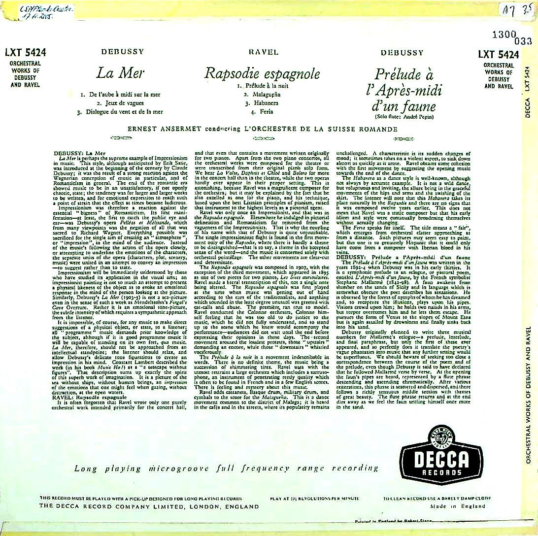商品コード:1300-033[DECCA] E.アンセルメ指揮スイス・ロマンドo. A.ペパン(fl) / ドビュッシー:海, 牧神の午後への前奏曲, ラヴェル:スペイン狂詩曲