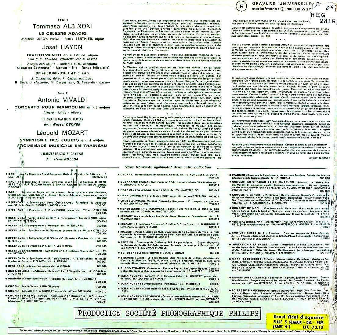 演奏者:P.ベルティエ(org)M.リロイ(vn)/パリ管楽器Ens./W.デッカー指揮カエシリア・マンドリンo.(アムステルダム)/H.コレサ指揮ウィーン楽友協会o.