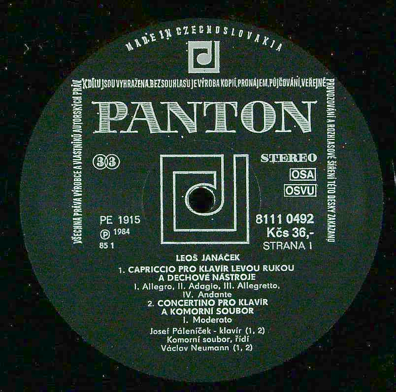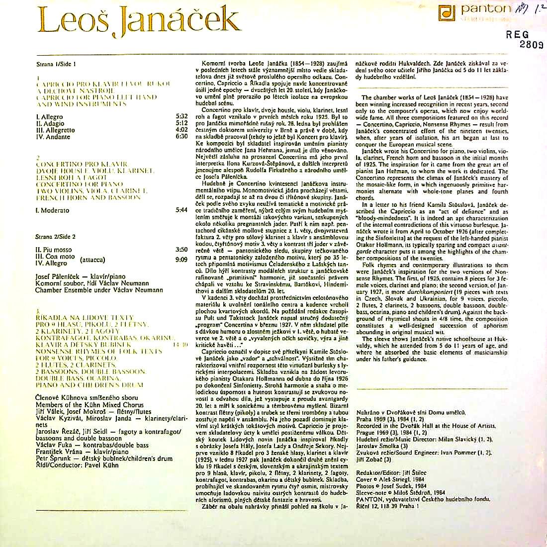 商品コード:REG-2809[旧チェコ・スロバキアPANTON] J.パーレニーチェク(pf) V, ネウマン室内Ens./V.ヴラーナ(pf) キューン混声cho. 他 / ヤナーチェク:ピアノ左手と管楽器のためのカプリッチョ 他