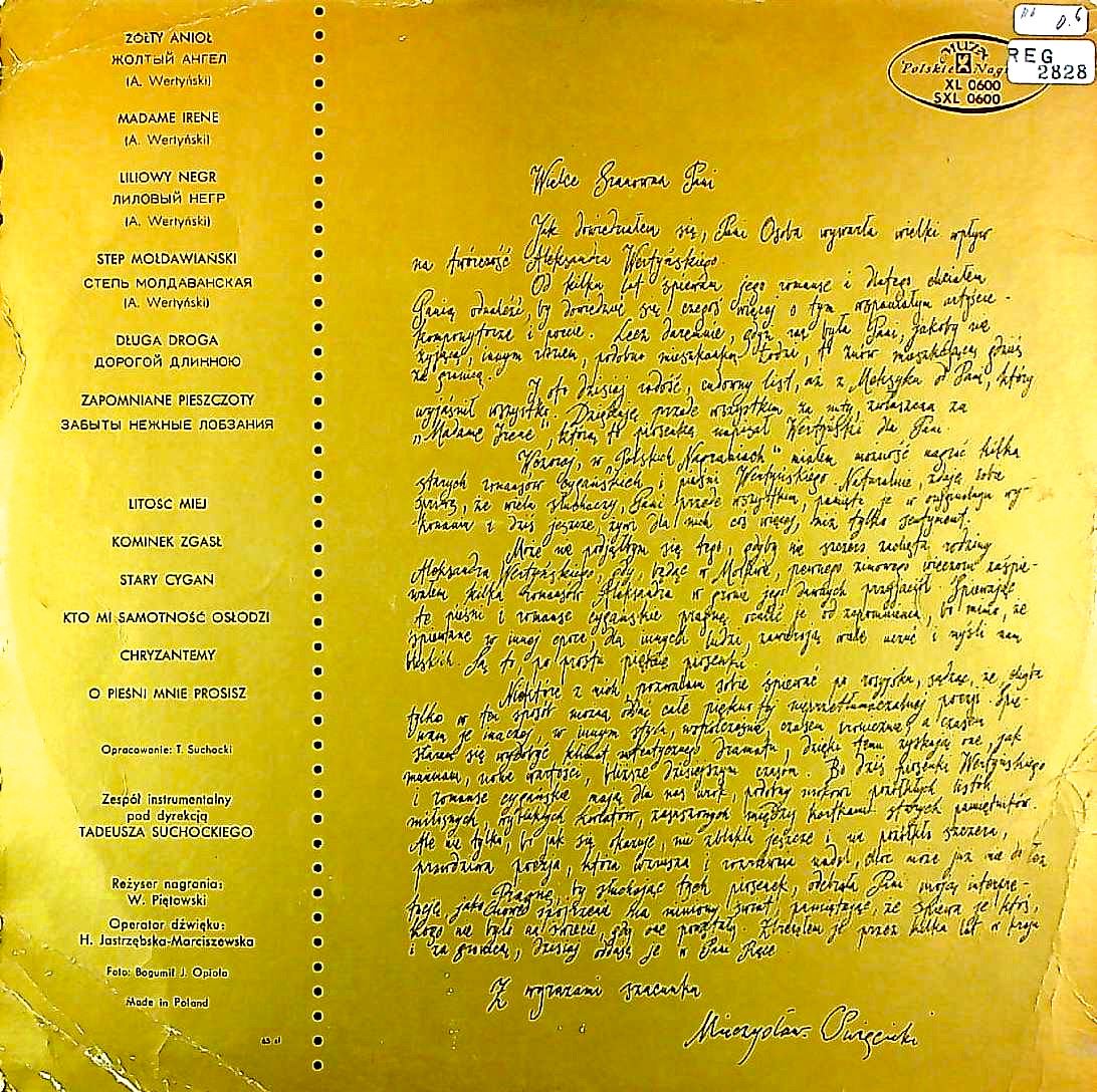 作品名:「ポーランド歌曲集」/黄色い天使, マダム・イレーヌ, リリーホワイト・ニグロ, モルダヴィアの草原, 長い道, 忘れられた愛撫, ハヴ・マーシー, 冷たい暖炉, オールド・ジプシー, 誰が孤独な私を慰めてくれるのか, 菊の花, 君は僕に歌を求める(T.スホツキ編)