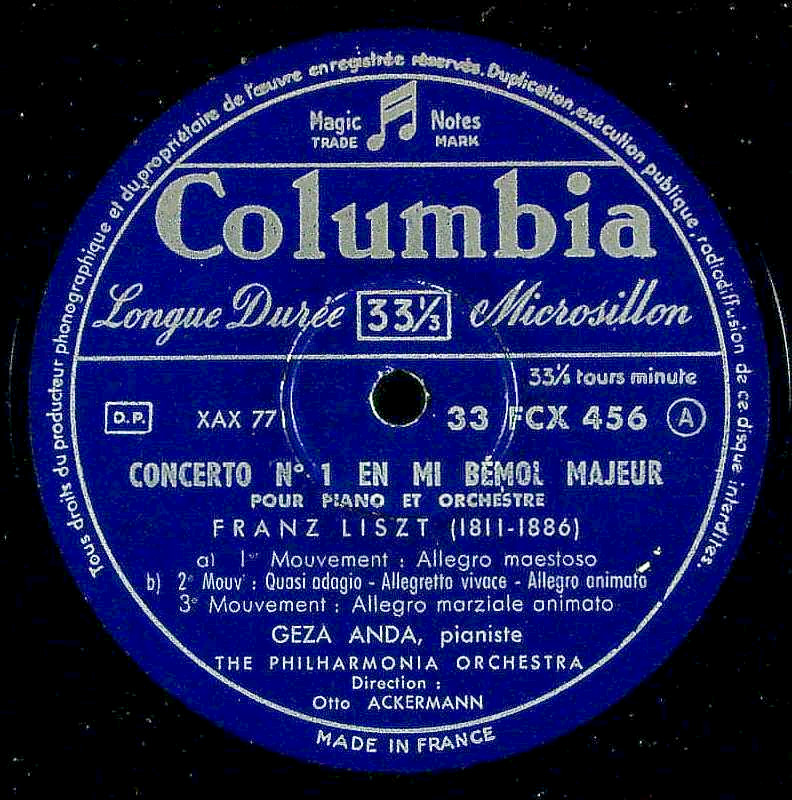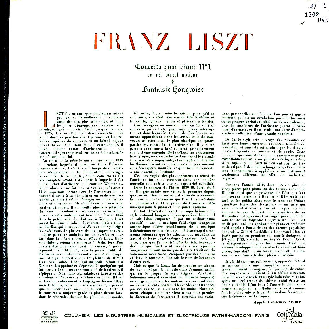 商品コード:1302-049[COLUMBIA] G.アンダ(pf) O.アッカーマン指揮フィルハーモニアo. / リスト:Pf協奏曲1番 変ホ長調 S.124, ハンガリー民謡旋律にもとづく幻想曲 S123