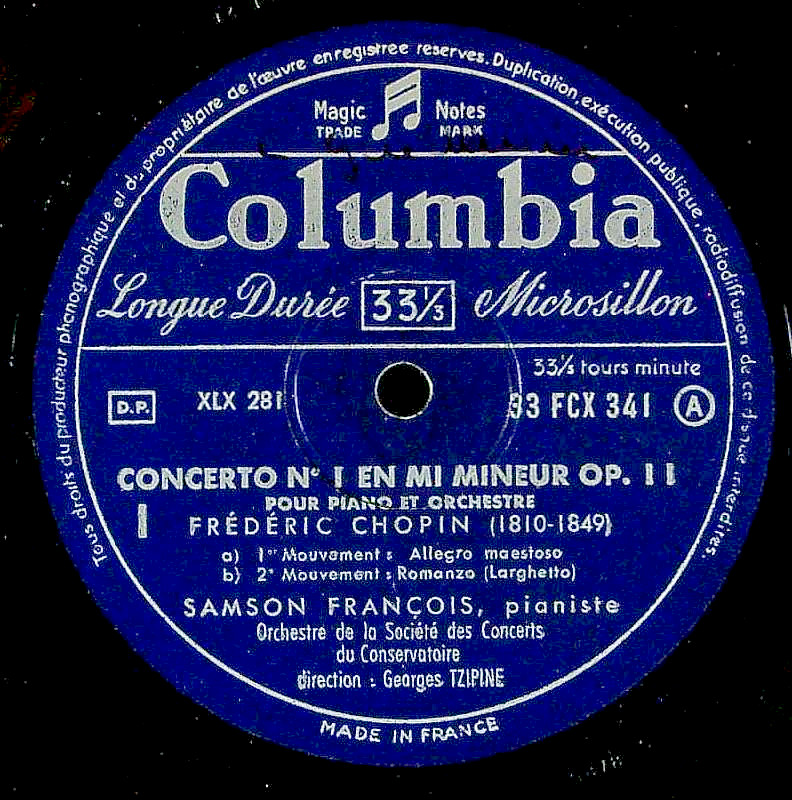 商品コード:1302-044[COLUMBIA] S.フランソワ(pf) G.ツィピーヌ指揮パリ音楽院o. / ショパン:Pf協奏曲1番Op.11, リスト:Pf協奏曲1番