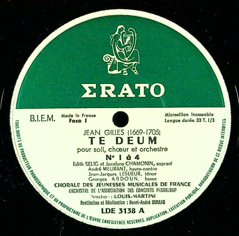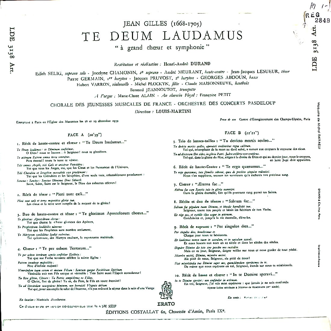 商品コード:REG-2849[仏ERATO] L.マルティーニ指揮パドルーco.E.セリ, J.シャモナン(s) M.C.アラン(org) 他 / ジル:テ・デウム