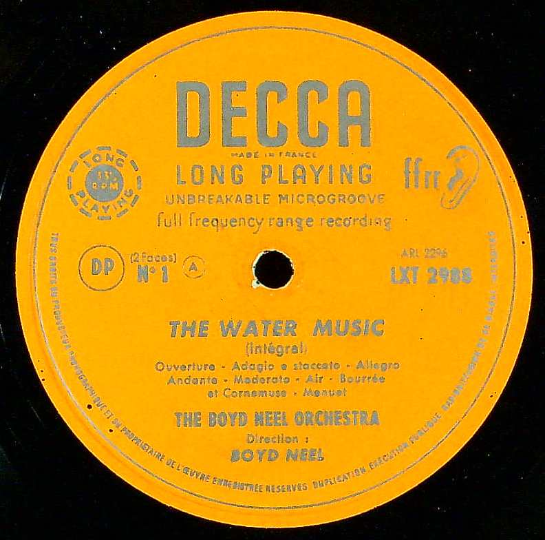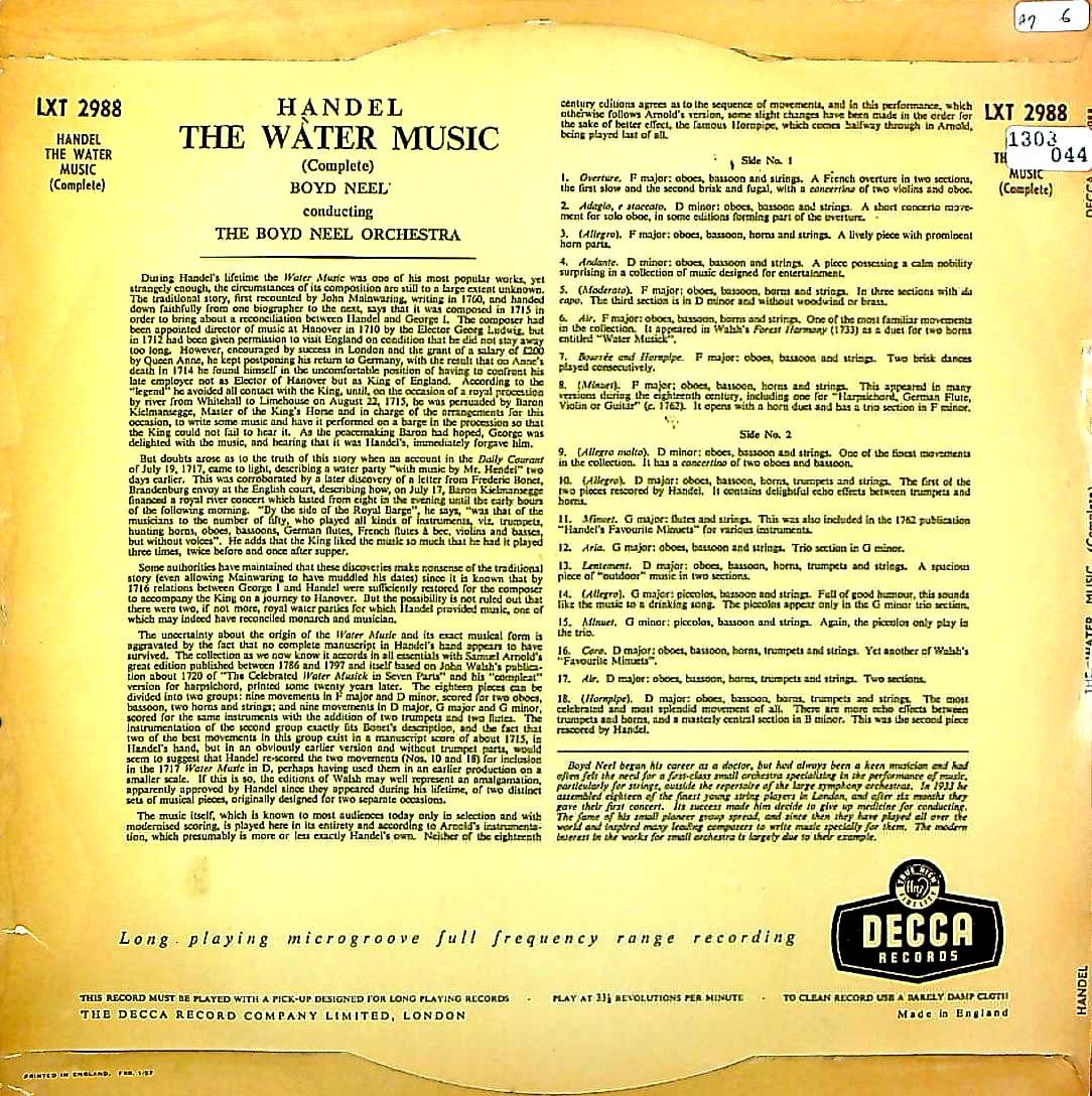 商品コード:1303-044[DECCA] B.ニール指揮ボイド・ニールo. T.ダート(cemb) / ヘンデル:管弦楽組曲「水上の音楽」(18曲)