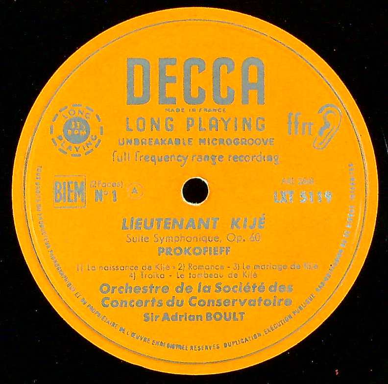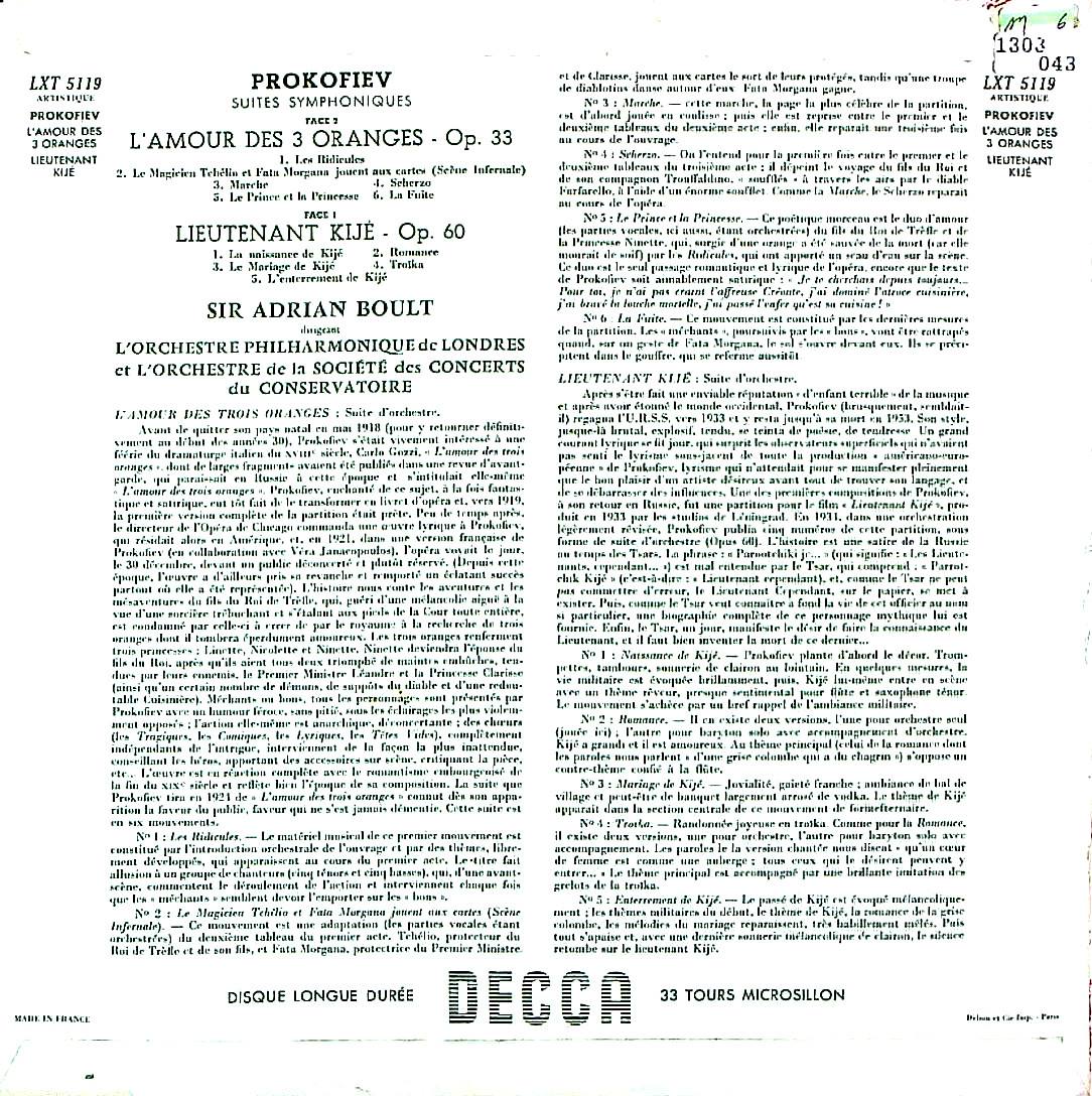 商品コード:1303-043p[DECCA] A.ボールト指揮ロンドンpo., パリ音楽院o. / プロコフィエフ:3つのオレンジへの恋Op.33bis, キージェ中尉Op.60