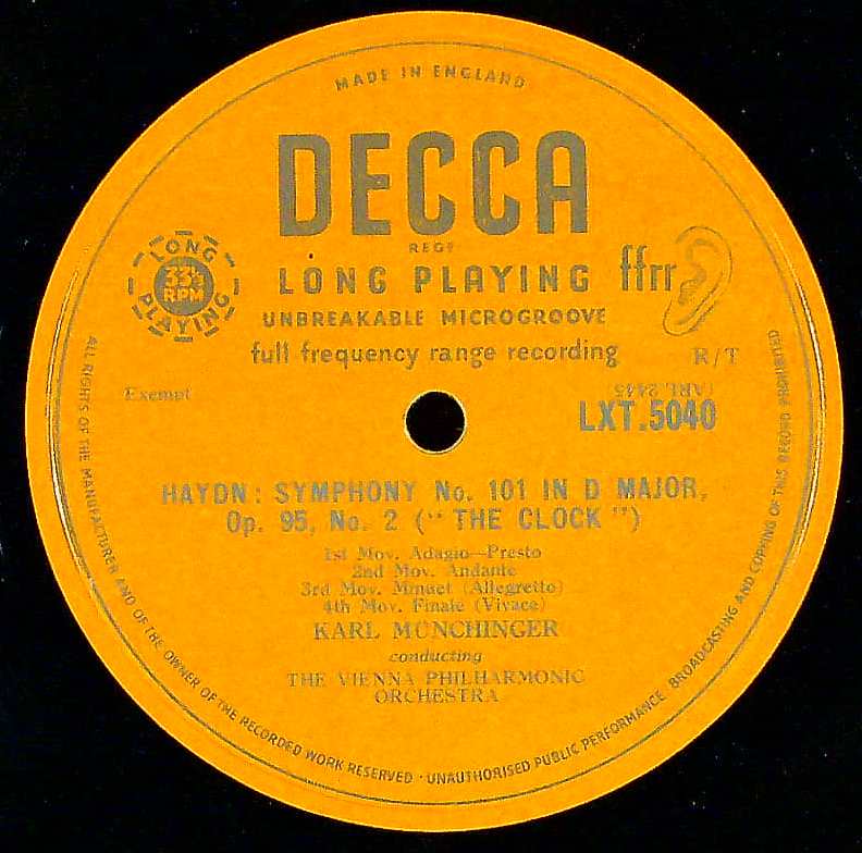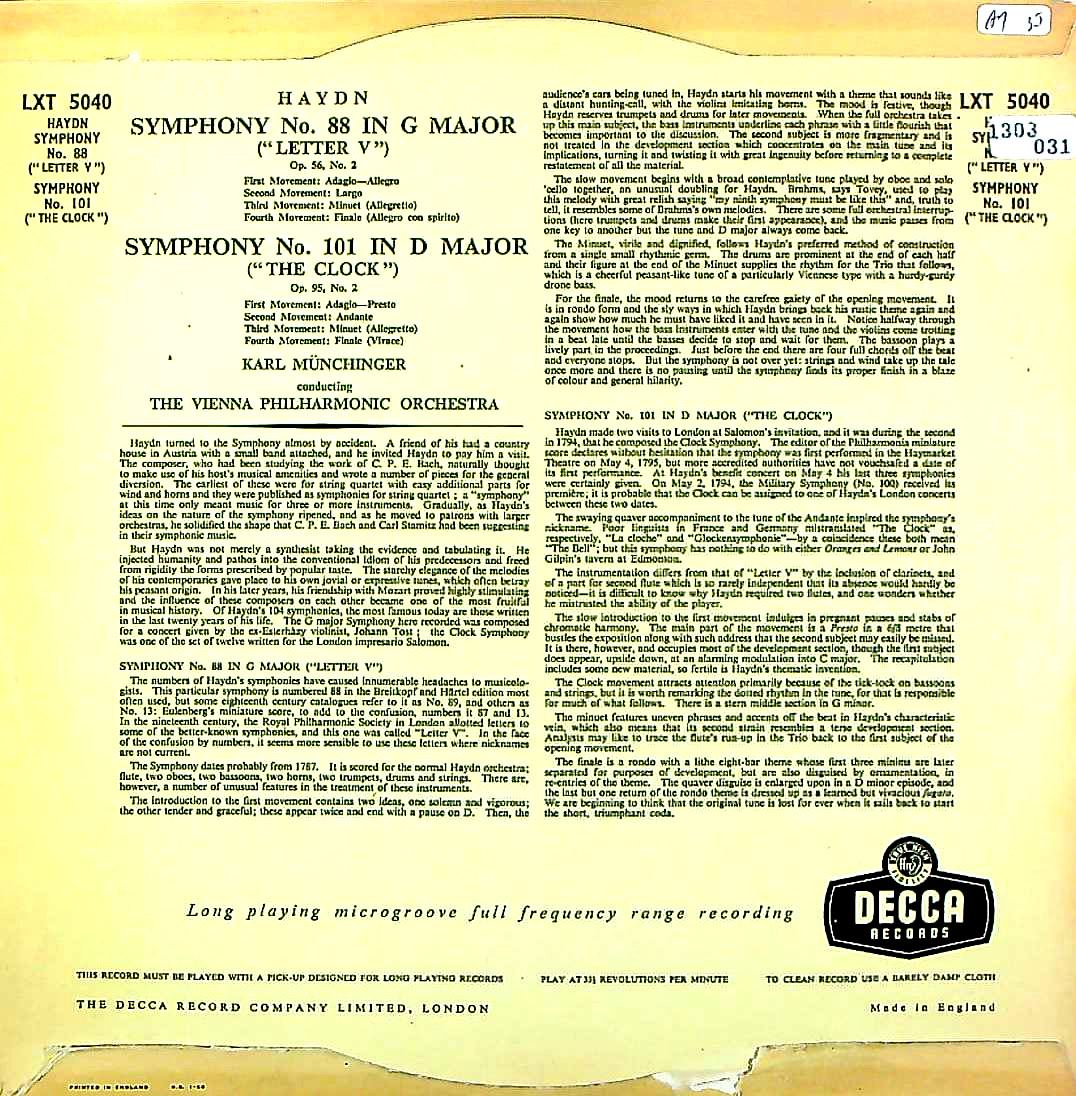 商品コード:1303-031[DECCA] K.ミュンヒンガー指揮ウィーンpo. / ハイドン:交響曲88番「V字」, 交響曲101番「時計」