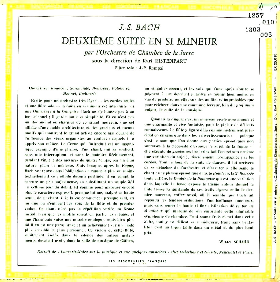 商品コード:1303-006p[Les Discophiles Français] K.リステンパルト指揮ザール室内o. J.P.ランパル(fl) / バッハ:管弦楽組曲2番B.1067