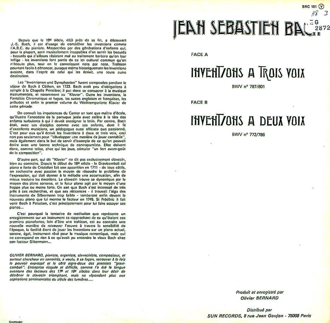 商品コード:REG-2872[仏SUN RECORDS] O.ベルナール(cemb) / バッハ:インヴェンションとシンフォニア