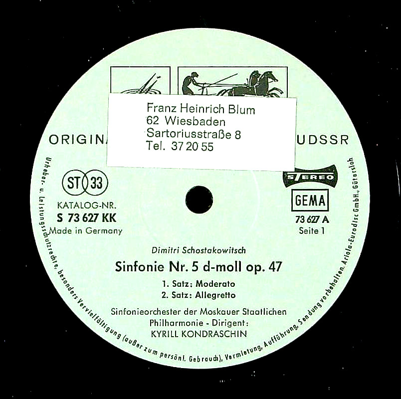 商品コード:REG-2862t[独EURODISC] K.コンドラシン指揮モスクワpo. / ショスタコーヴィチ:交響曲5番Op.47