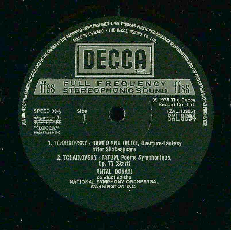 商品コード:1304-057[DECCA] A.ドラティ指揮ワシントン・ナショナルso. / チャイコフスキー:交響詩集-2/ロメオとジュリエット, 運命Op.77, テンペストOp.18