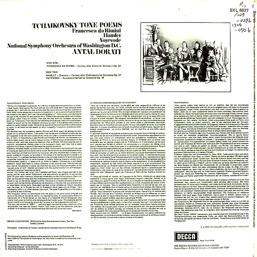 商品コード:1304-050b[DECCA] A.ドラティ指揮ワシントン・ナショナルso. / チャイコフスキー:交響詩集-1/フランチェスカ・ダ・リミニOp.32, ハムレットOp.67, 交響的バラード「地方長官」Op.78