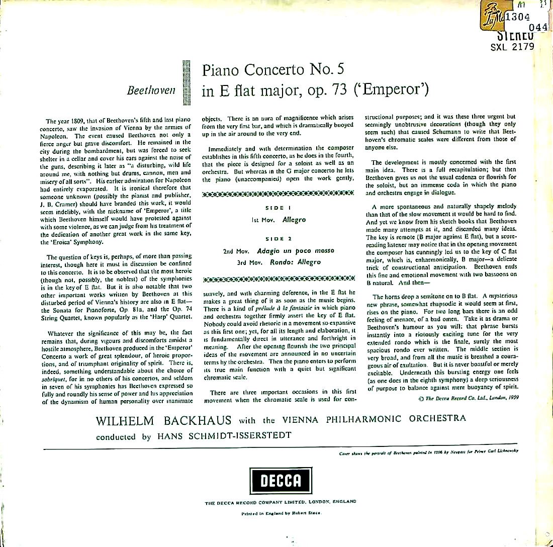商品コード:1304-044n[DECCA] W.バックハウス(pf) H.シュミット・イッセルシュテット指揮ウィーンpo. / ベートーヴェン:Pf協奏曲5番Op.73「皇帝」
