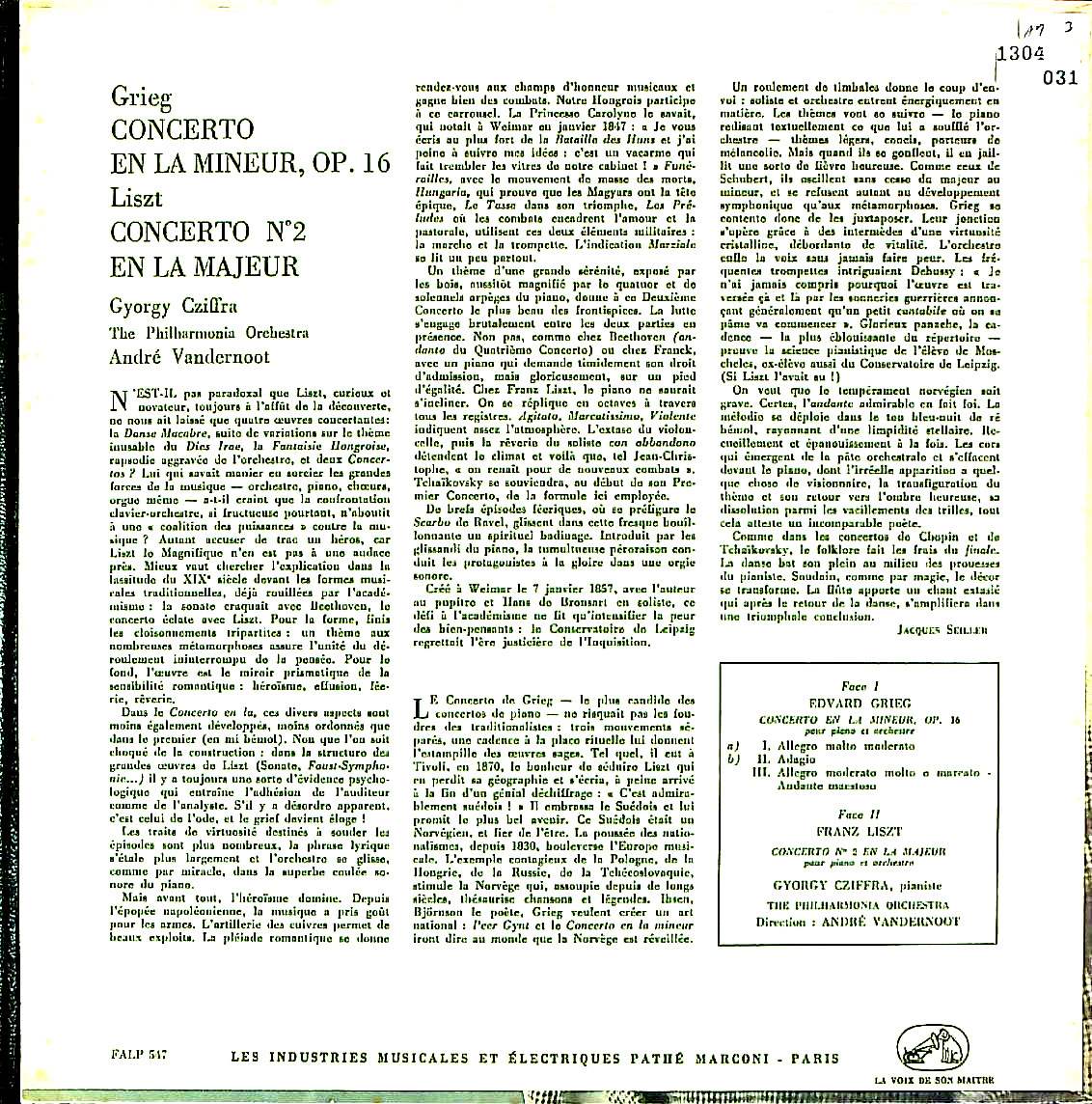 商品コード:1304-031[La Voix De Son Maître] G.シフラ(pf) A.ヴァンデルノート指揮フィルハーモニアo. / グリーグ:Pf協奏曲Op.16, リスト:Pf協奏曲2番