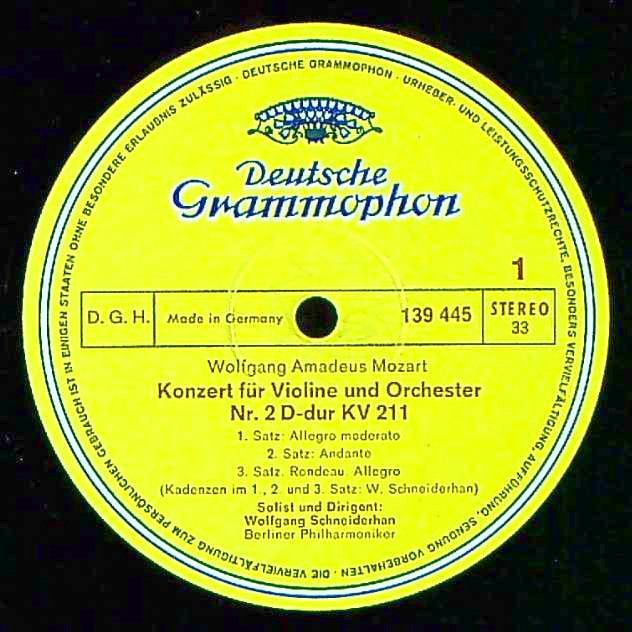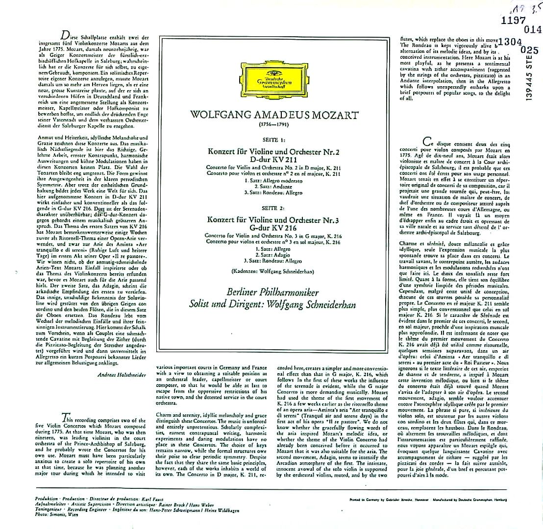 商品コード:1304-025[DGG] W.シュナイダーハン(vn)指揮ベルリンpo. / モーツァルト:Vn協奏曲2番K.211, Vn協奏曲3番K.216