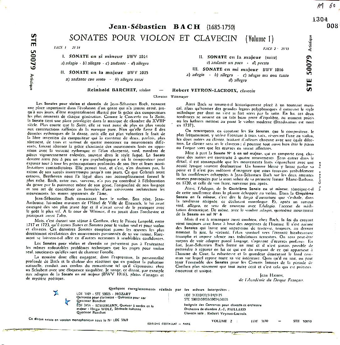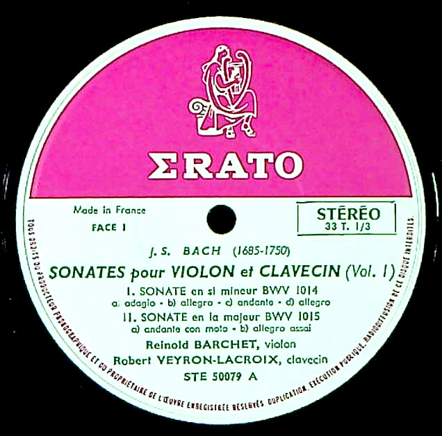 商品コード:1304-008[ERATO] R.バルヒェット(vn) R.ヴェイロン・ラクロワ(cemb) / バッハ:Vnソナタ集-1/1~3番B.1014~1016