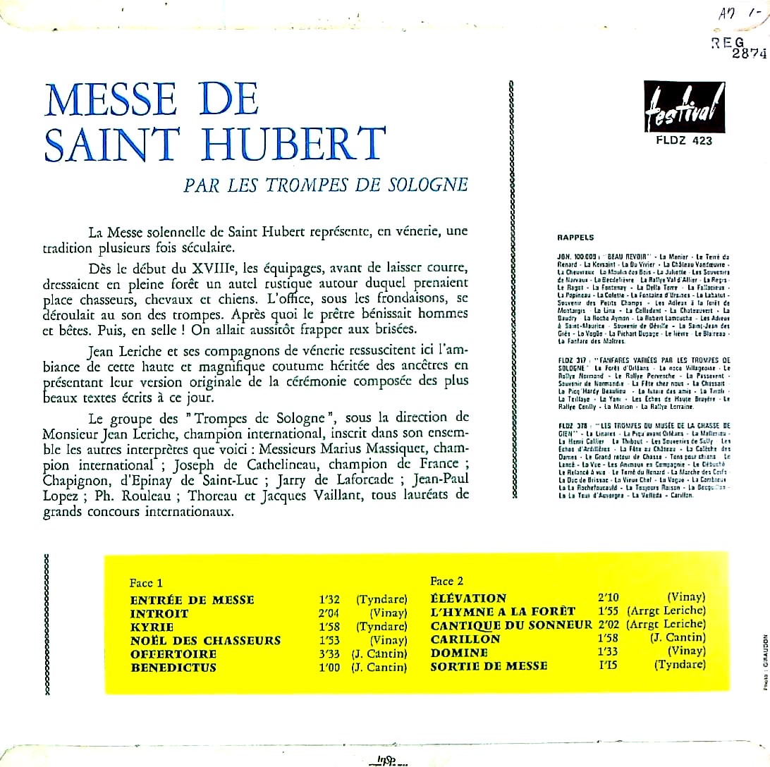 商品コード:REG-2874[仏FESTIVAL] M.J.ルリシュ指揮トロンペ・ドゥ・ソローニュ / 「トロンペ・ドゥ・ソローニュによる聖テュベール教会のミサ」/ティンダーレ, ヴィネー, カンタン, レリシュ