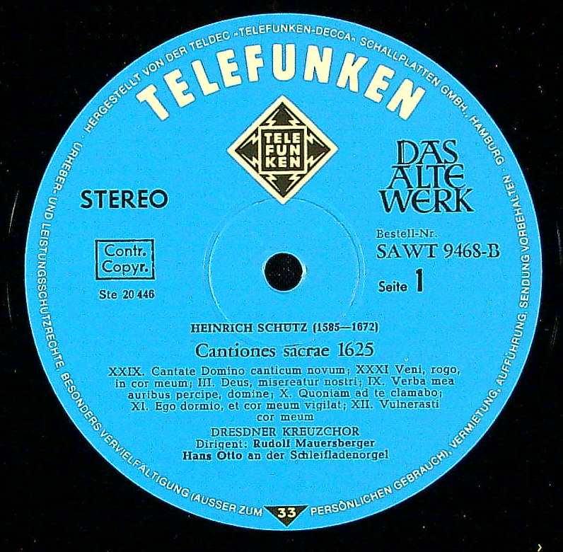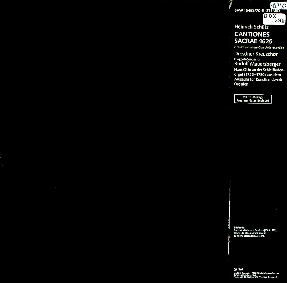 商品コード:BOX-1396[独TELEFUNKEN] R.マウエルスベルガー指揮ドレスデン十字架cho. / シュッツ:カンツィオネス・サクラ SWV 53-93 (全曲)