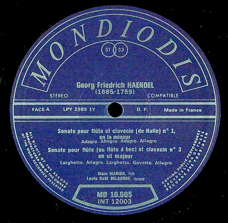 商品コード:BOX-1372[仏MONDIODIS] A.マリオン(fl) L.N.ブノーブル(cemb) / 「ヘンデル:Flソナタ集」