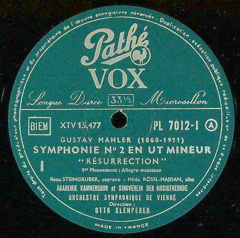 商品コード:BOX-1348[仏Pathé-VOX] O.クレンペラー指揮ウィーンso. アカデミー室内cho. I.シュタイングルーバー(s) H.レッスル・マイダン(a) / マーラー:交響曲2番「復活」
