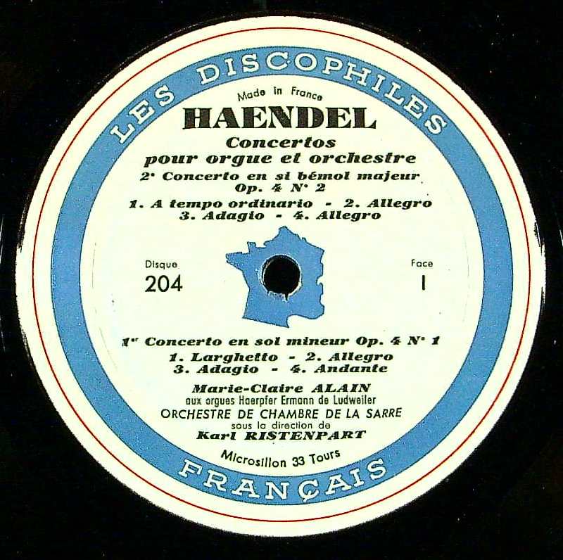 商品コード:1307-059[Les Discophiles Français] M.C.アラン(org) K.リステンパルト指揮ザール室内o. / ヘンデル:Org協奏曲集(全12曲)
