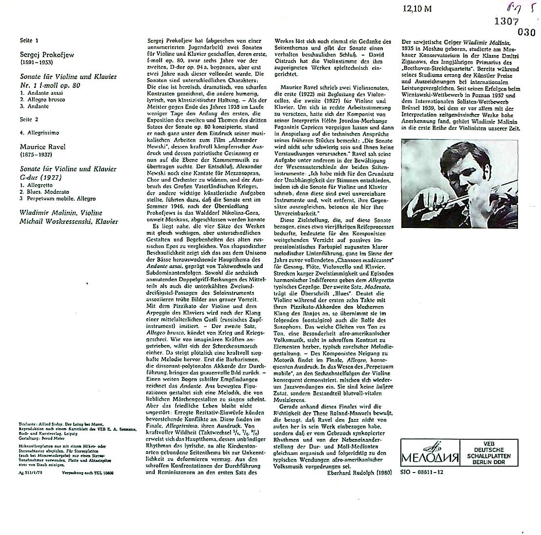 商品コード:1307-030t[ETERNA] V.マリニン(vn) M.ヴォスクレセンスキー(pf) / プロコフィエフ:Vnソナタ1番Op.80, ラヴェル:Vnソナタ ト長調