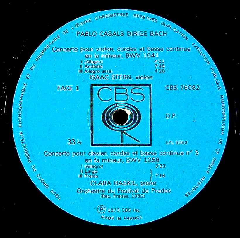 商品コード:1307-011[CBS] P.カザルス指揮祝祭o. C.ハスキル(pf), J.シゲティ(vn), I.スターン(vn)/ バッハ:Pf協奏曲B.1056, Vn協奏曲1番B.1041, Vn協奏曲B.1052