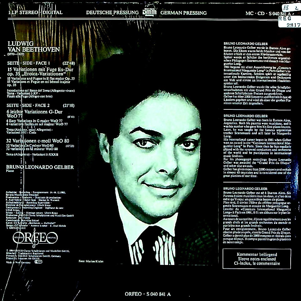 商品コード:REG-2917[独ORFEO] B.L.ゲルバー(pf) / ベートーヴェン:エロイカ変奏曲Op.35, 創作主題による6つの変奏曲, 創作主題による32の変奏曲