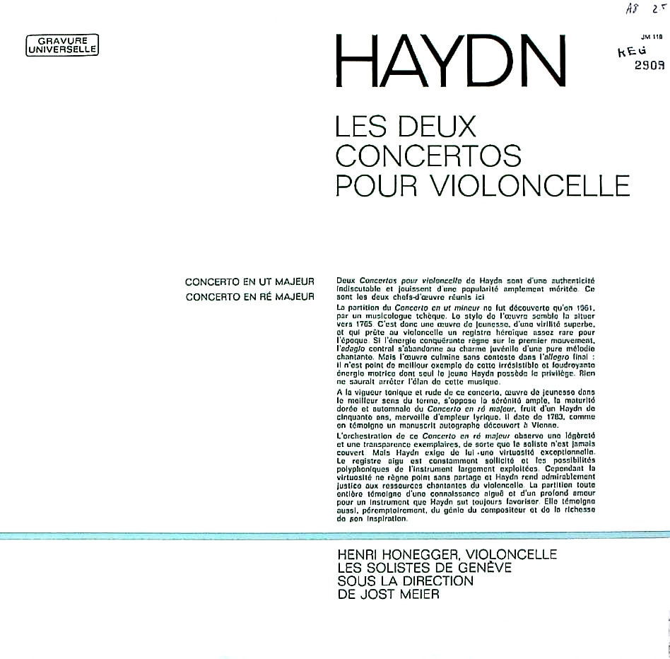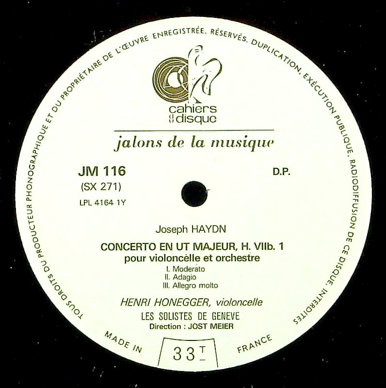 商品コード:REG-2909[仏カイエ・デュ・ディスク] H.オネゲル(vc) J.メイエル指揮ジュネーヴ・ソロイスツ / ハイドン:Vc協奏曲(2曲)